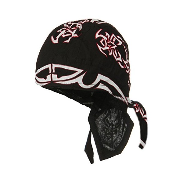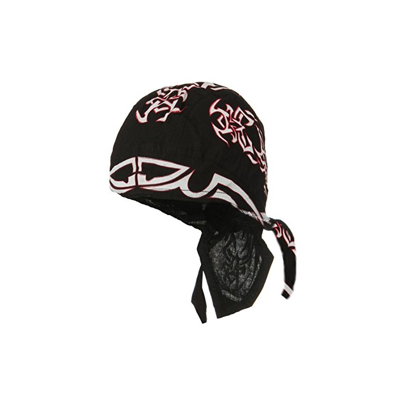 Tribal Tattoo Design Motorcycle Skull Cap, Cotton Doo Rag Dorag Black, Red White