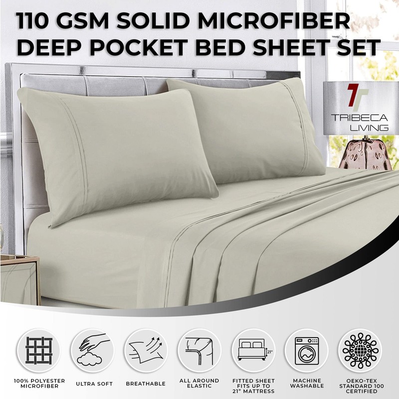 Tribeca Living 110-GSM Extra Deep Pocket Sheets – 4 PC Super Soft, Cooling, Durable, Fade and Wrinkle Resistant Brushed Microfiber, Elasticized Fitted Sheet with Wide Elastic, Queen Cloud
