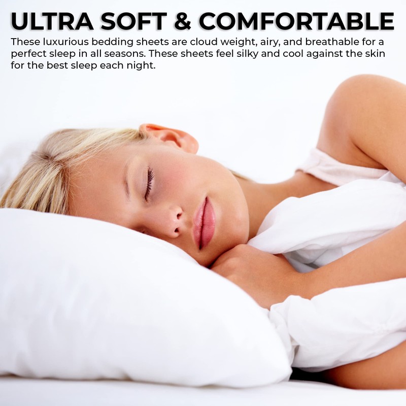- SOFT AND SMOOTH – Luxury bed sheets soft with the feel of sateen sheets and the comfort of cotton sheets, they are ideal for those looking for luxury. Feature band detailing on the pillowcases and the flat sheet.