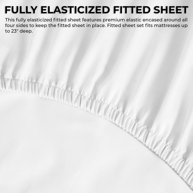 - 6-PC SHEETS SET INCLUDES – The sheet and pillowcase set includes one flat sheet, one fitted sheet, and four pillowcases. The fully elasticized deep pocket fitted sheet can accommodate mattresses up to 23" deep.