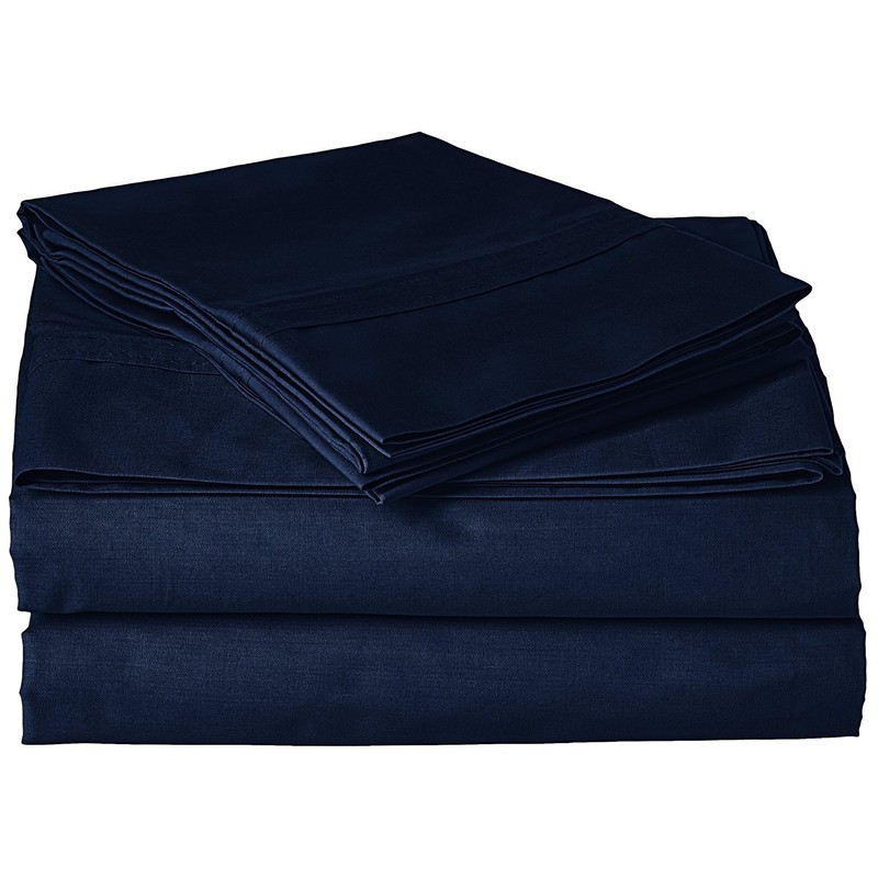 Tribeca Living Queen Bed Sheet Set, Crisp and Smooth Cotton Percale Solid Sheets and Pillowcase Set, Extra Deep Pocket, 300 Thread Count, 4-Piece Luxury Bedding, Midnight Blue