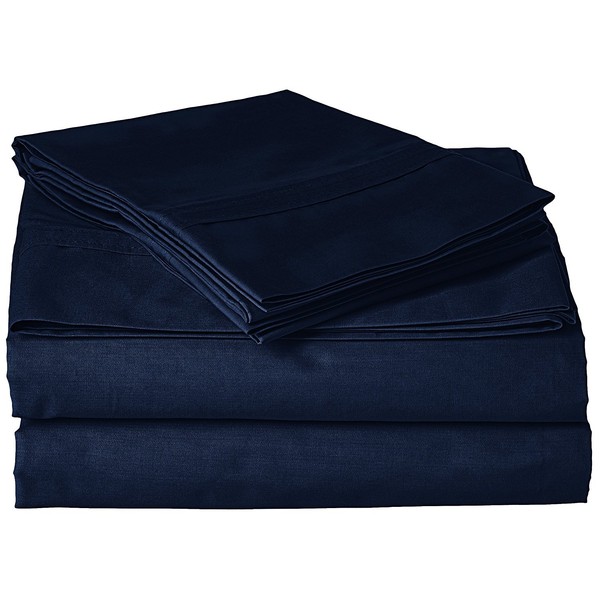 Tribeca Living Queen Bed Sheet Set, Crisp and Smooth Cotton Percale Solid Sheets and Pillowcase Set, Extra Deep Pocket, 300 Thread Count, 4-Piece Luxury Bedding, Midnight Blue