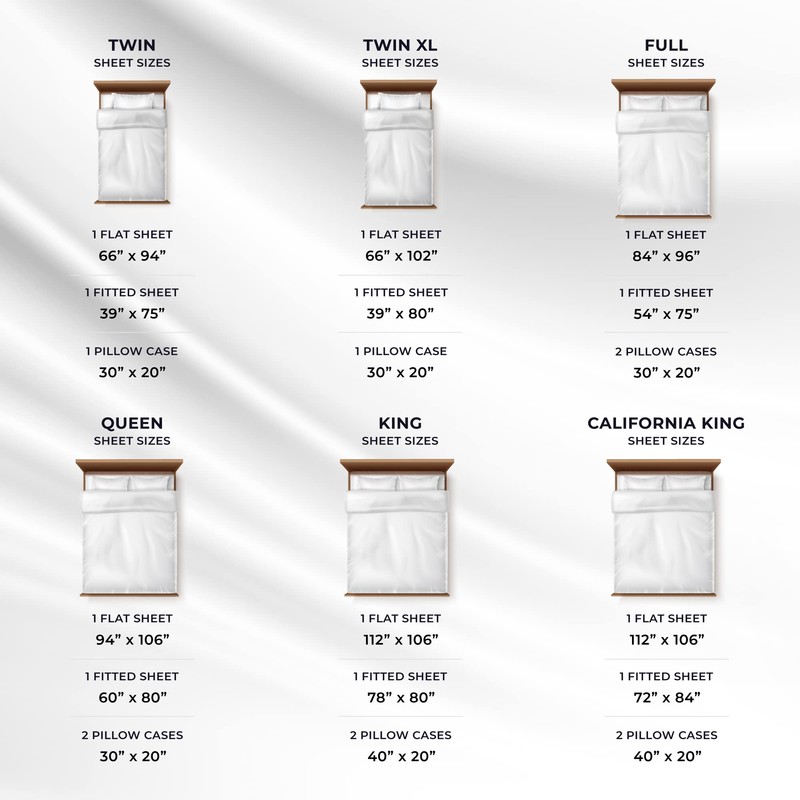 - Generous Size for Maximum Coverage: The flat sheet is 96" x 106", the fitted sheet is 60" x 80", and the pillowcases are 20" x 30". These sizes ensure ample coverage and comfort, with sheets that drape beautifully over your bed for a luxurious feel.