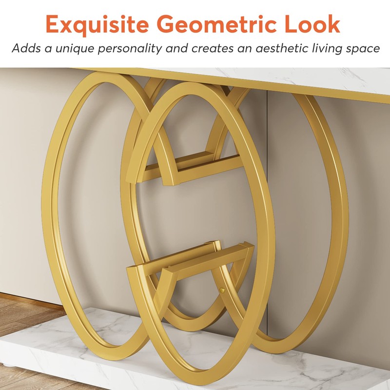 - ✔【Timeless Geometric Base】The double G shaped metal frame of this gold accent table not only makes it seem like a piece of art in the house but also offers a highly durable structure that can bear up to 300lbs. A thoughtful design with rubber stoppers at the bottom of this white console table will prevent sliding around and scratching the floor.