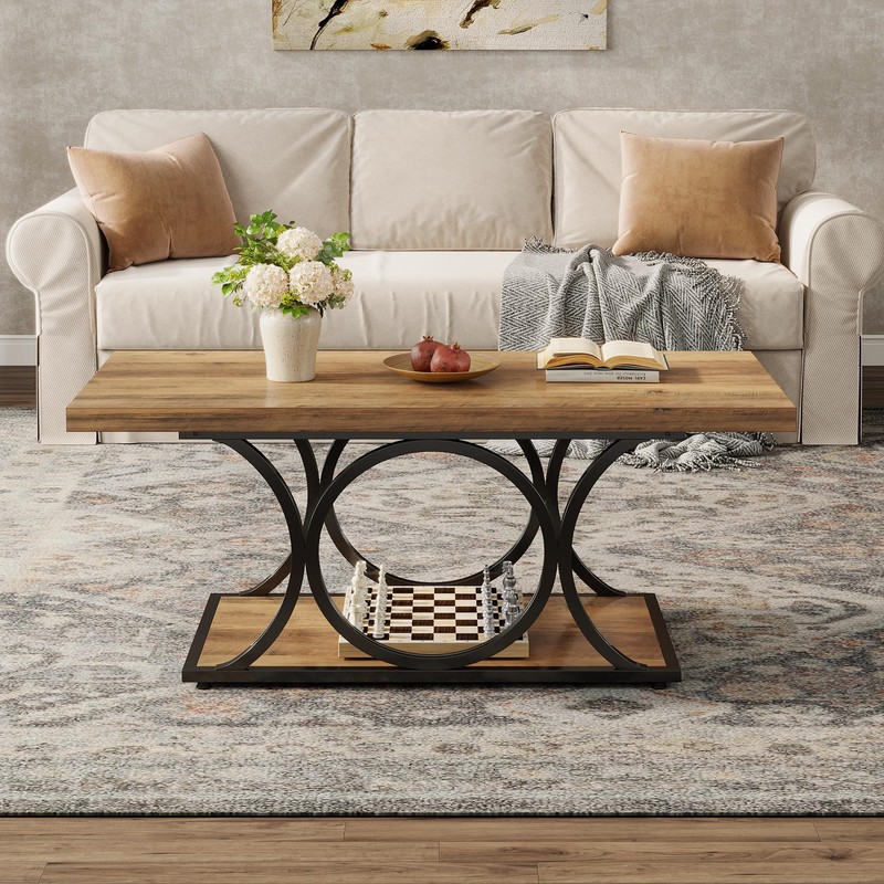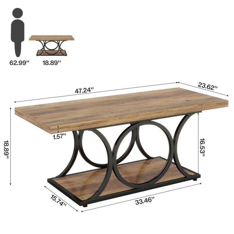 - 2-Tier Center Table: Spacious tabletop and bottom shelf perfect for keeping your living room supplies organized and your daily essentials close at hand. The minimalist coffee table help to create a clean and clutter-free space that’s perfect for relaxing