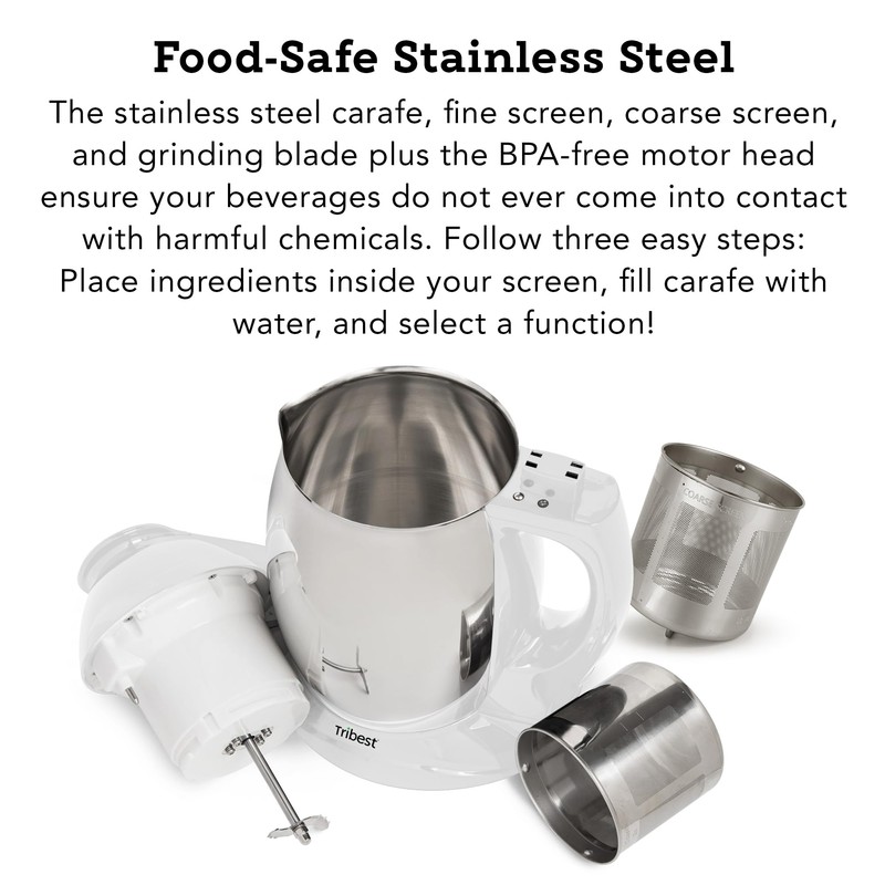 - Food-Safe Structure: Almond milk maker with stainless steel carafe, screens, and grinding blade with BPA-free motorhead ensures your beverages do not come in contact with harmful chemicals; no exposed heating coil makes it easy to clean