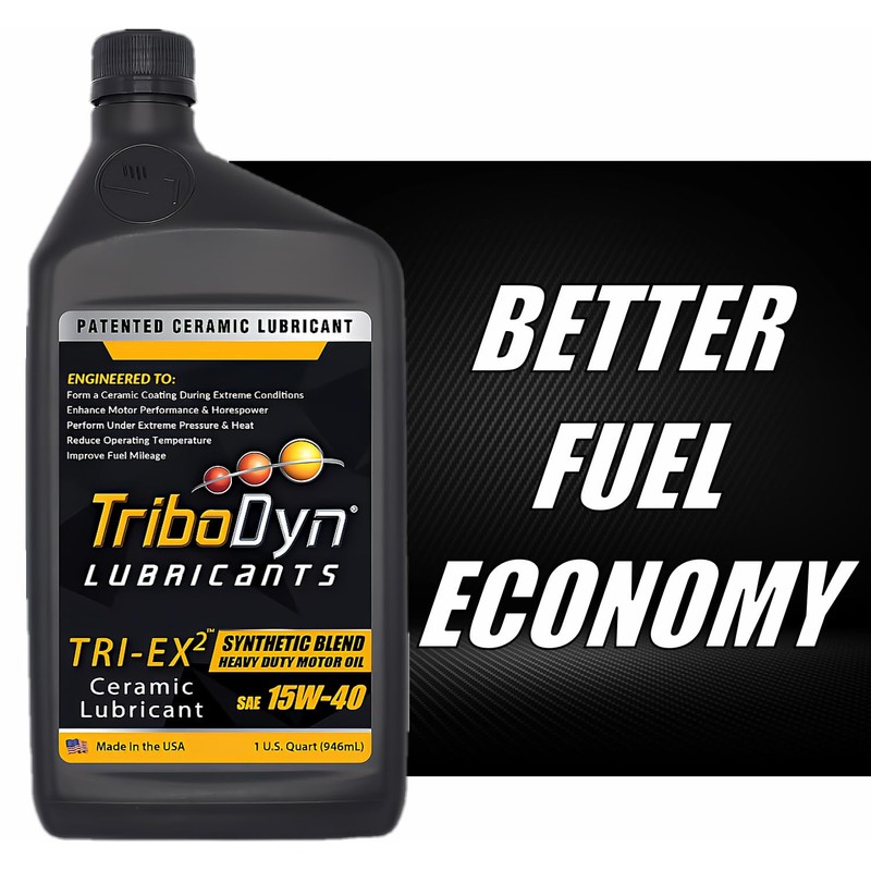 - Restore Engine Performance: TriboDyn TRI-EX2 15w40 Oil, fortified with a patented ceramic coating, actively reduces blow-by by filling in minor internal surface scratches, restoring compression and maximizing engine power.