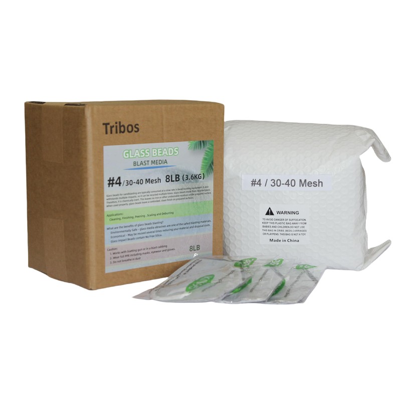 - Tribos glass beads blast media has clear and tough edges, Suitable for various types of sand blaster for air compressor, sandblasting gun, small sand blaster, sandblasting cabinet