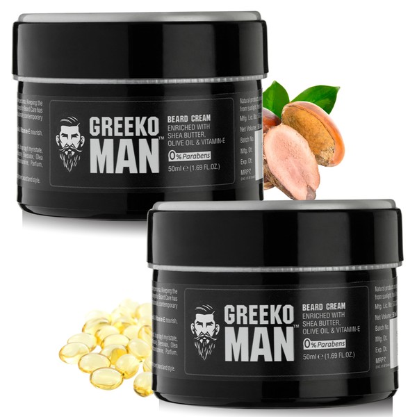 TRICHUP Vasu Greeko Man Beard Cream | Nourishes, Softens & Strengthens Beard | With Shea Butter, Olive Oil & Vitamin E | Tames & Styles Beard | Pack of 2 (1.69 fl.oz Each, 3.38 fl.oz Total)
