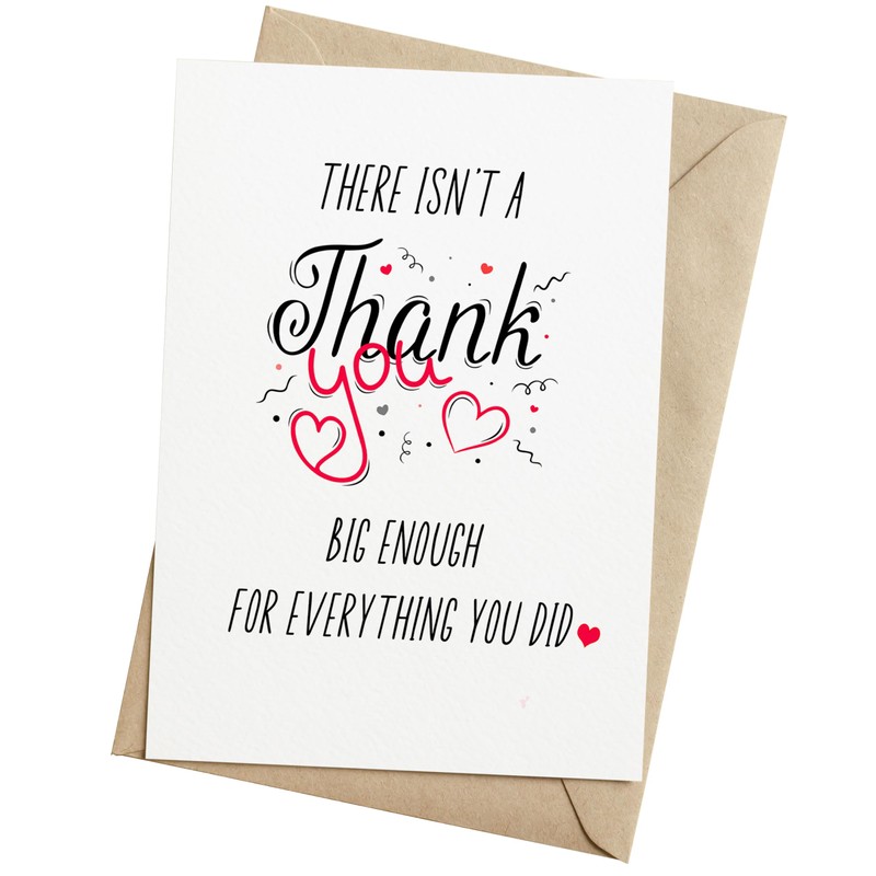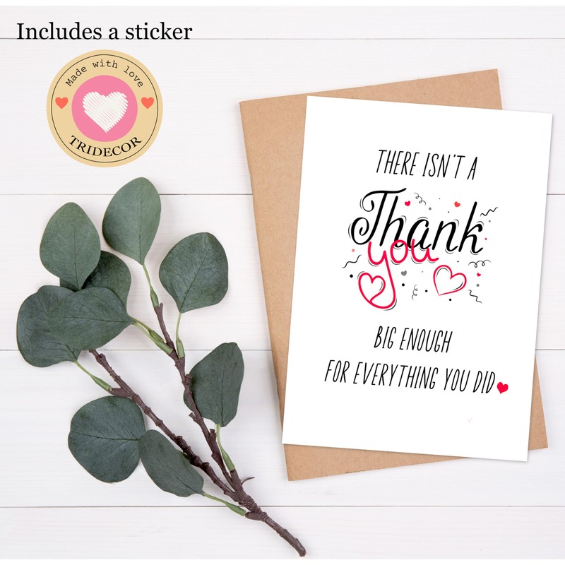 TRIDECOR Thank you Card with Envelope, Simple Cute Single Thankful Card, Grateful Gratitude Card - Folded 5"x7" Card for Him, Her, Teacher, Boss, Doctor, Mom, Dad, Coworker, Bridesmaids, Groomsmen