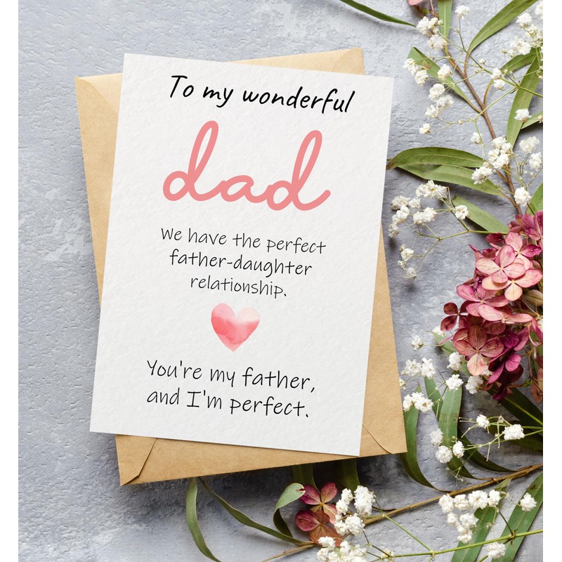 TRIDECOR Valentines Day Card From Daughter, Fathers Day Card, Birhtday Card to Dad - to my wonderful dad Card - Folded 5"x7" Card with Envelope - Blank Inside