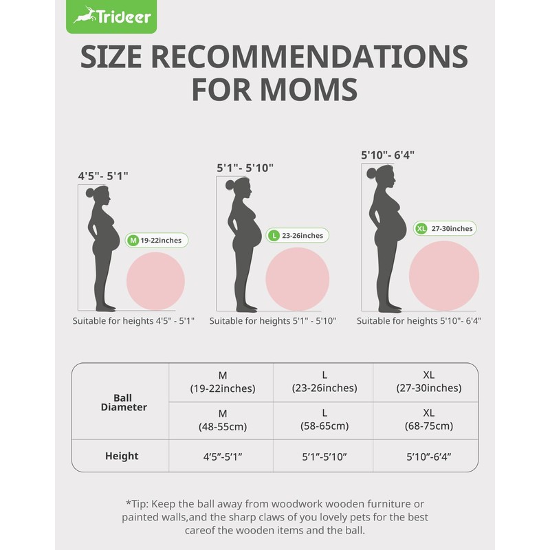 - 💝[Scientific Pregnancy Guide] Getting a free PREGNANCY GUIDEBOOK with your Trideer Birthing Ball. We offer detailed instructions for safe and targeted use during different stages - pre-conception, early pregnancy, mid-pregnancy, late pregnancy, and postpartum. No need for a personal trainer!