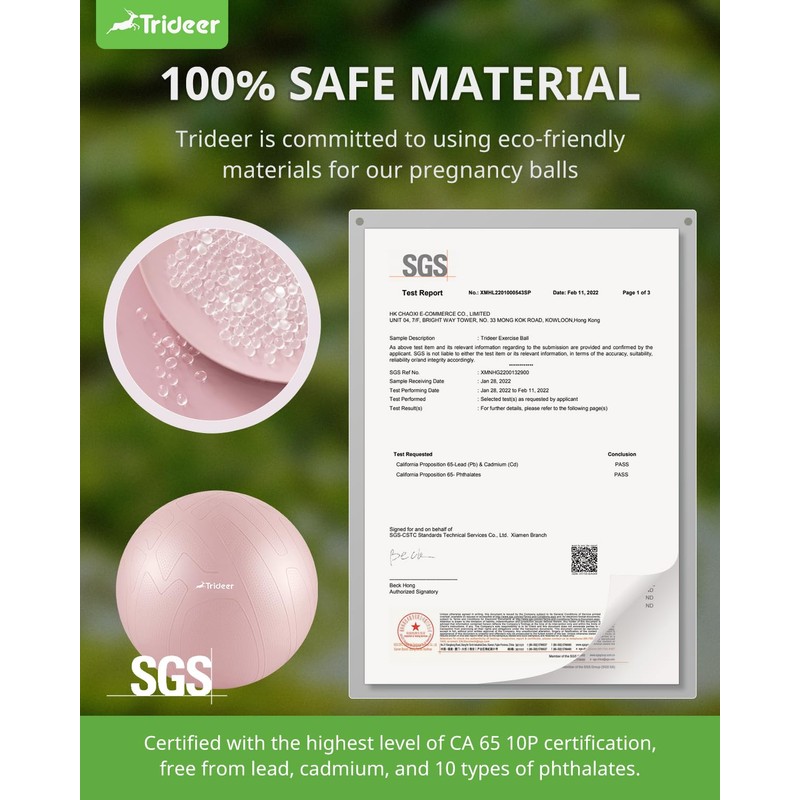 - 🤰[Ideal for Pregnancy, Maternity & Labor] Enhanced Material for maximum support. Experience the extra thickness (approx. 1.7mm) and weight (55cm + 300g, 65cm + 400g) compared to standard yoga balls. Rest assured with the safe material that complies with CA 10P certification, free from lead, cadmium, and 10 harmful phthalates. Enjoy peace of mind throughout your journey.