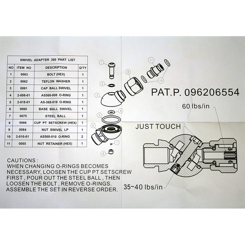 Adapter connects between regulator hose and 2nd stage to offer 360 degrees of swivel and comfort.