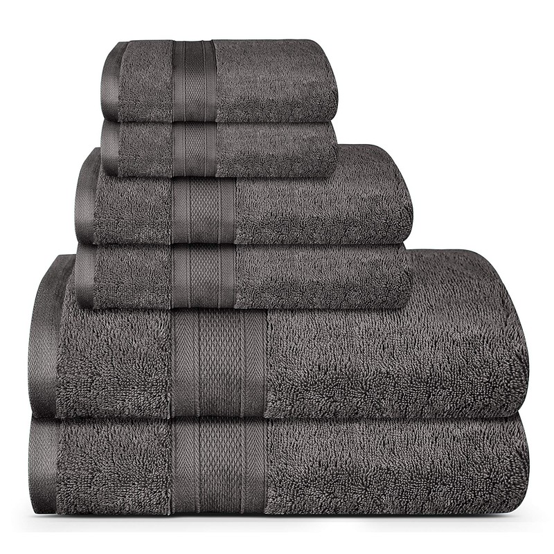 TRIDENT Soft and Plush, 100% Cotton, Highly Absorbent, Bathroom Towels, Super Soft, 6 Piece Towel Set (2 Bath Towels, 2 Hand Towels, 2 Washcloths) , Charcoal