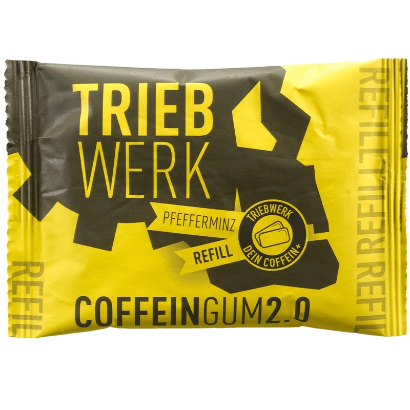 TRIEBWERK TRIEBWERK Koffein Kaugummi, 50mg Koffein pro Gum, Pfefferminz-Geschmack, 100 St??ck, +Vitamin B12 (10x Refill)
