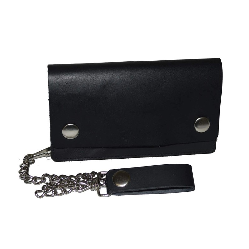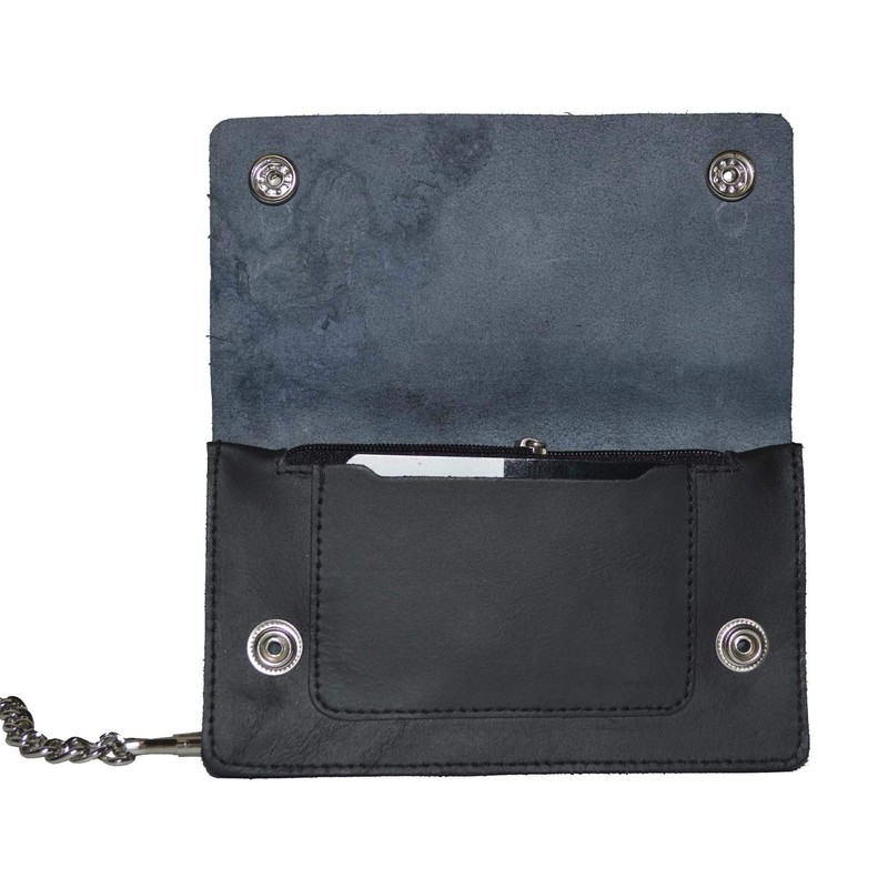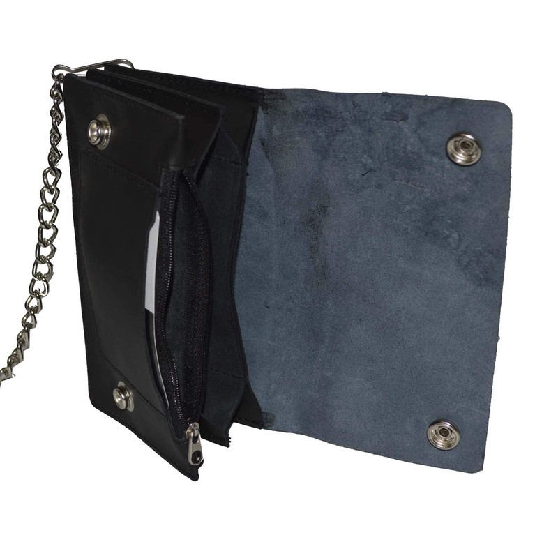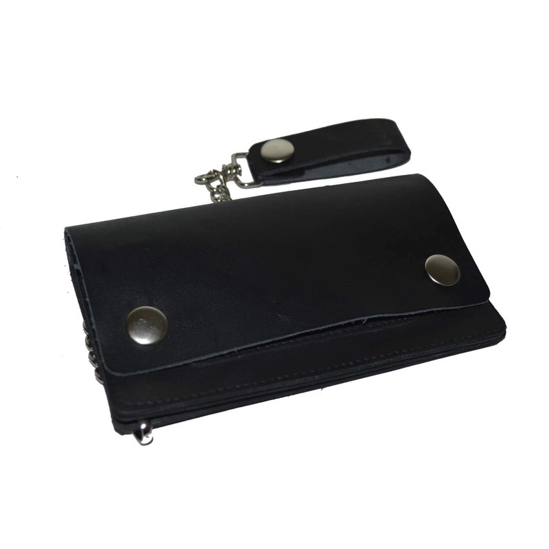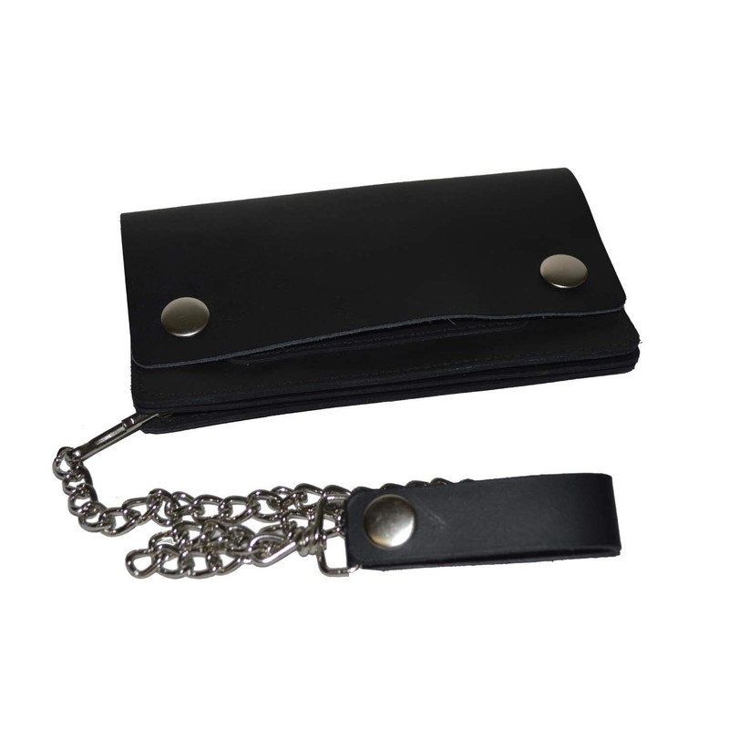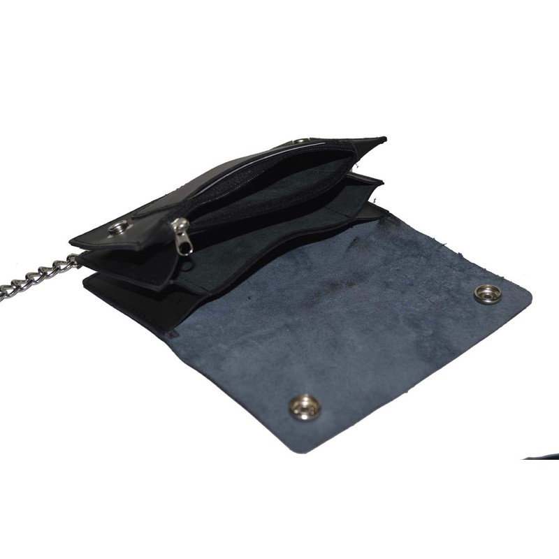 Trifold Biker's Large Wallet ID Card Holder With Chain Genuine Leather