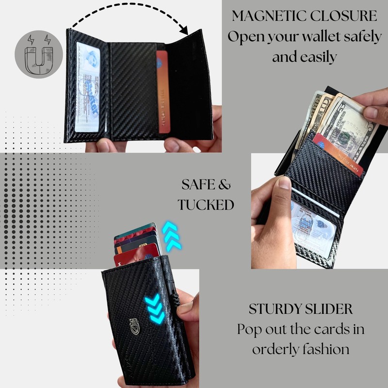 • π‘Έπ’–π’Šπ’„π’Œ 𝑨𝒄𝒄𝒆𝒔𝒔: The wallet has a lever mechanism that allows you to slide it over on the side and pop out your cards in a tiered fashion. You can easily access any of the 7 cards stored in the Aluminum case when you open the wallet. It will suit your lifestyle and also handle paper money and make you appear polished professional.
