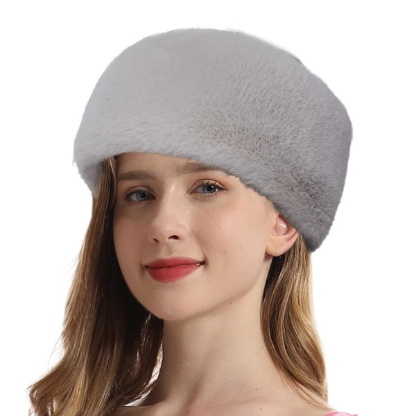 Trifolium Winter Faux Fur Headband for Women Chic Ear Warmer with Stretchy Fluffy Elastic Headband, Silver Rabbit