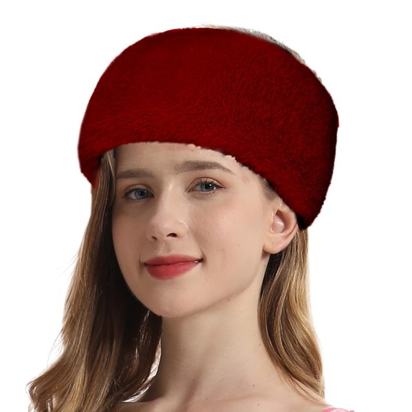 Trifolium Winter Faux Fur Headband for Women Fancy Ear Warmer with Stretch Fluffy Elastic Headband (One size Maroon Rabbit HDB6387-Rab-WRD)