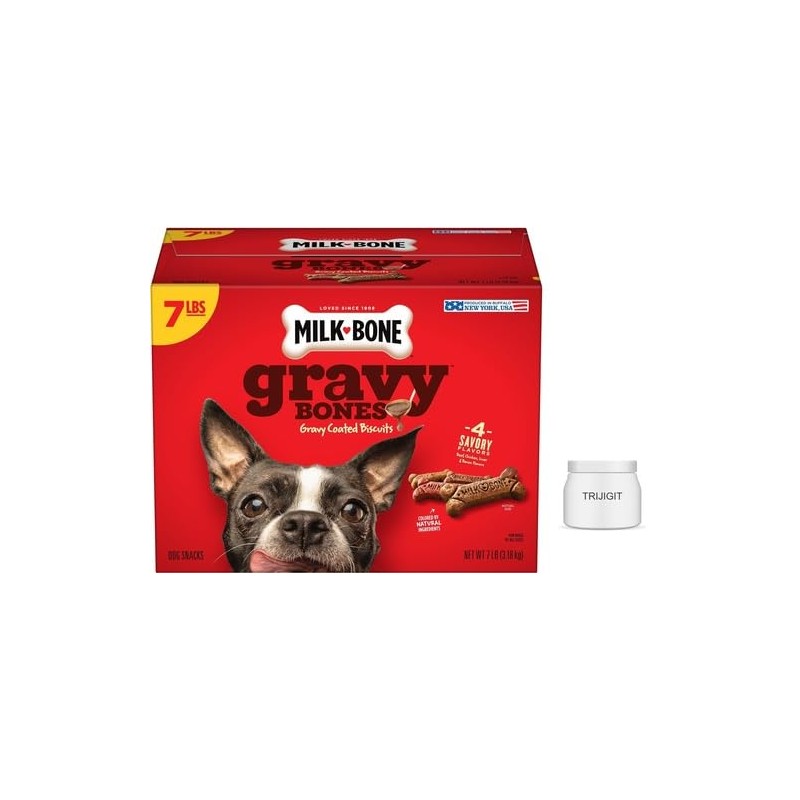 TRIJIGIT Gravy Bones Dog Treats with 4 Savory Meat Flavors Coated in Gravy, 7 Pound +Compatible for Milk-Bone