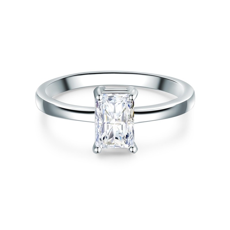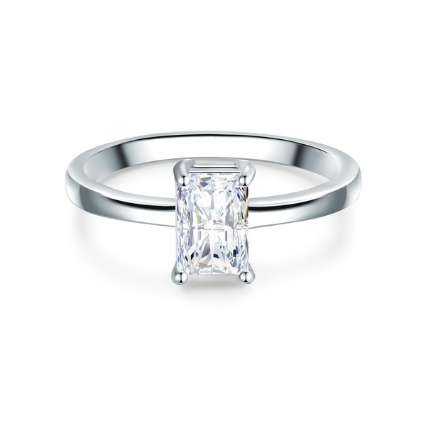 Trilani Women's Engagement Ring 925 Sterling Silver with Brilliant Cut Cubic Zirconia Solitaire Rectangular Prong Setting Solitaire Proposal Ring, Silver