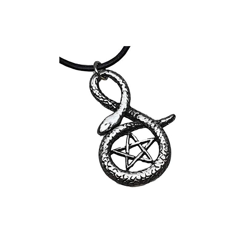 Trilogy Jewelry Pewter Snake Pentagram Star Pentacle Pendant on Leather Necklace