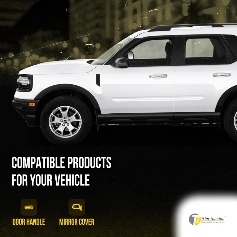 Trim Illusion Snap On Chrome Car Door Handle Cover Trim Accessories Compatible with Ford Bronco Sport 2021-2024 No Smart Key, DH325
