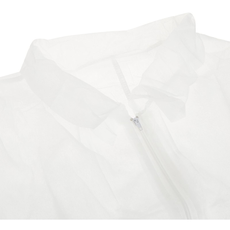 Tough, durable, lightweight coveralls made of white tear-resistant, non-woven polypropylene, protects skin and clothing from dirt, paint and overspray.