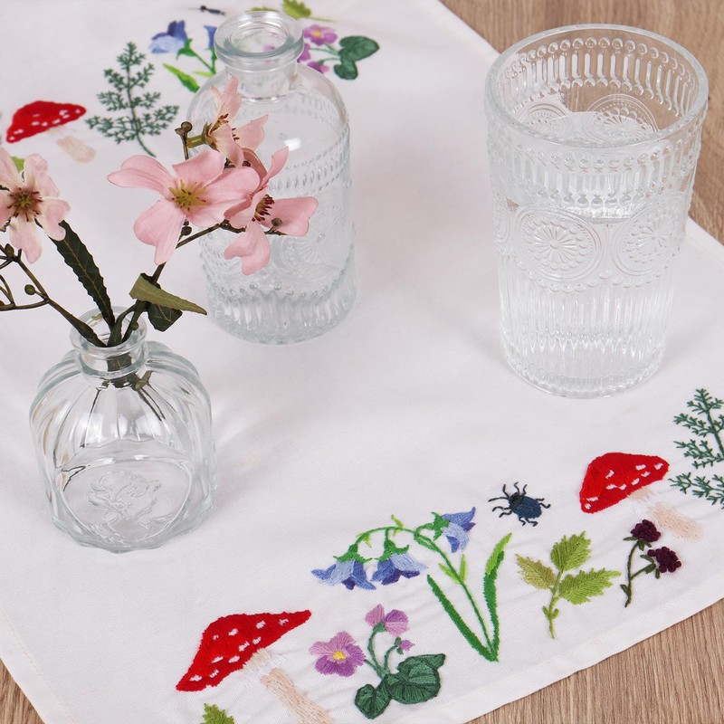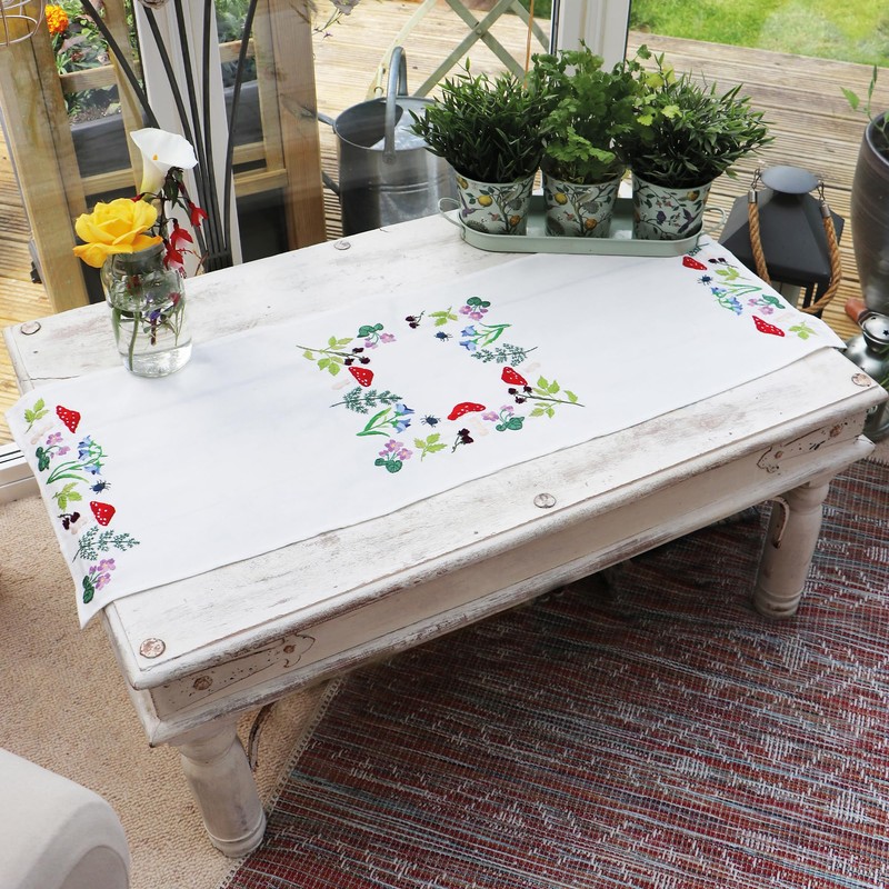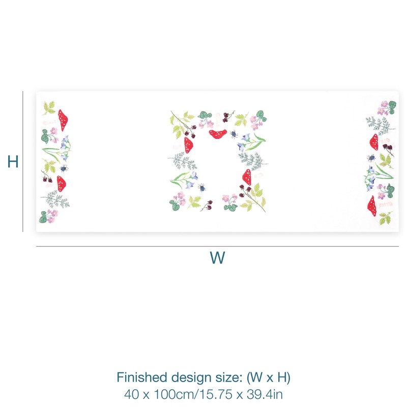 Trimits Embroidery Kit - Table Runner - Includes Printed Fabric, Threads, Needle & Instructions, 40 x 100cm, Toadstools