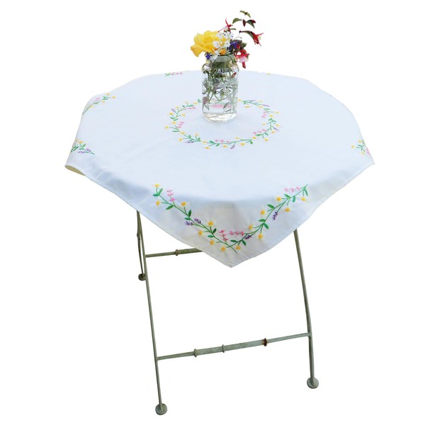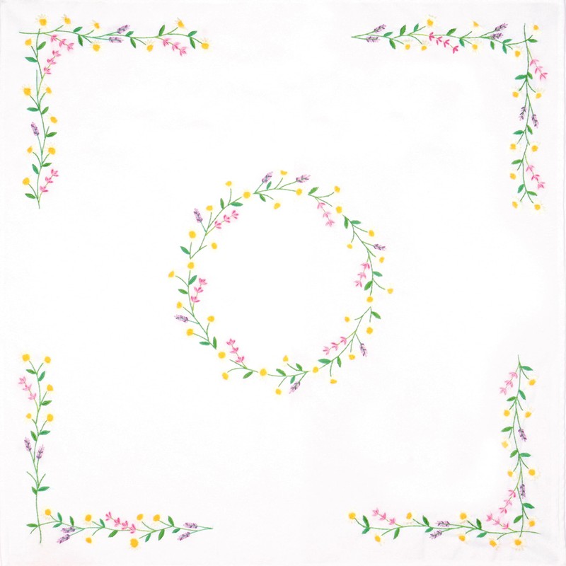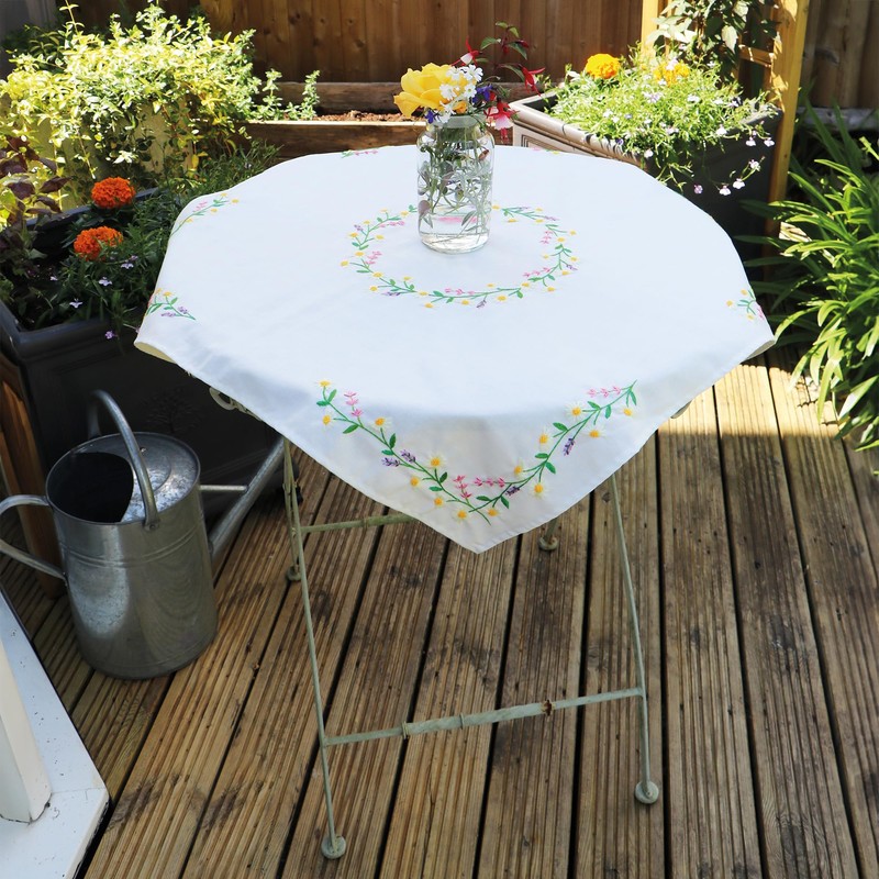 Trimits Embroidery Kit - Tablecloth - Includes Printed Fabric, Threads, Needle & Instructions, 80 x 80cm, Daisy Chain
