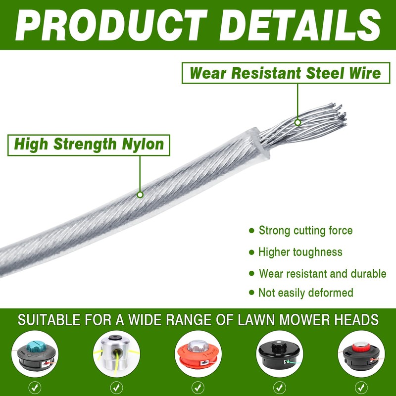 - Long durability: our mower rope, consisting of a nylon sheath and a steel wire core, offers durability and longevity to ensure a powerful solution for your lawn care.