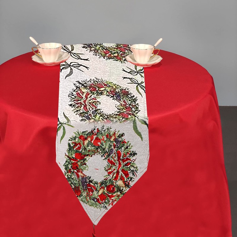 Trimming Shop Christmas Table Runner Wreath Woven Long Cotton Linen Woven Table Runner with Tassel for Holiday Festive Season Home Christmas Table Decoration, 180cm x 35cm