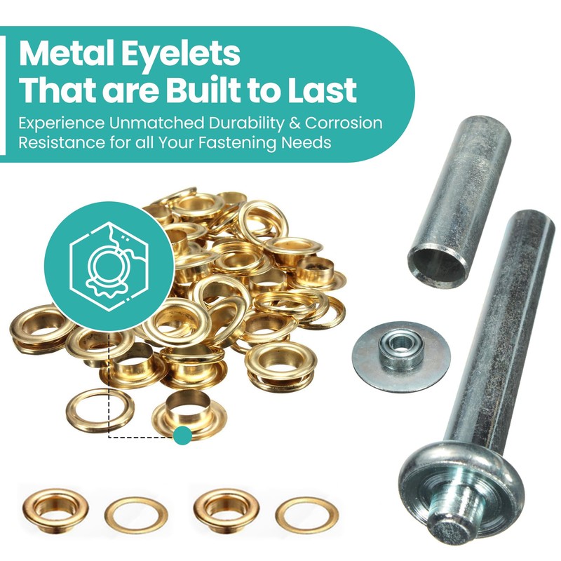 • THREE SET HAND TOOL: These are 50 pieces of Gold Metal Eyelets Grommet with washers including hand tool
