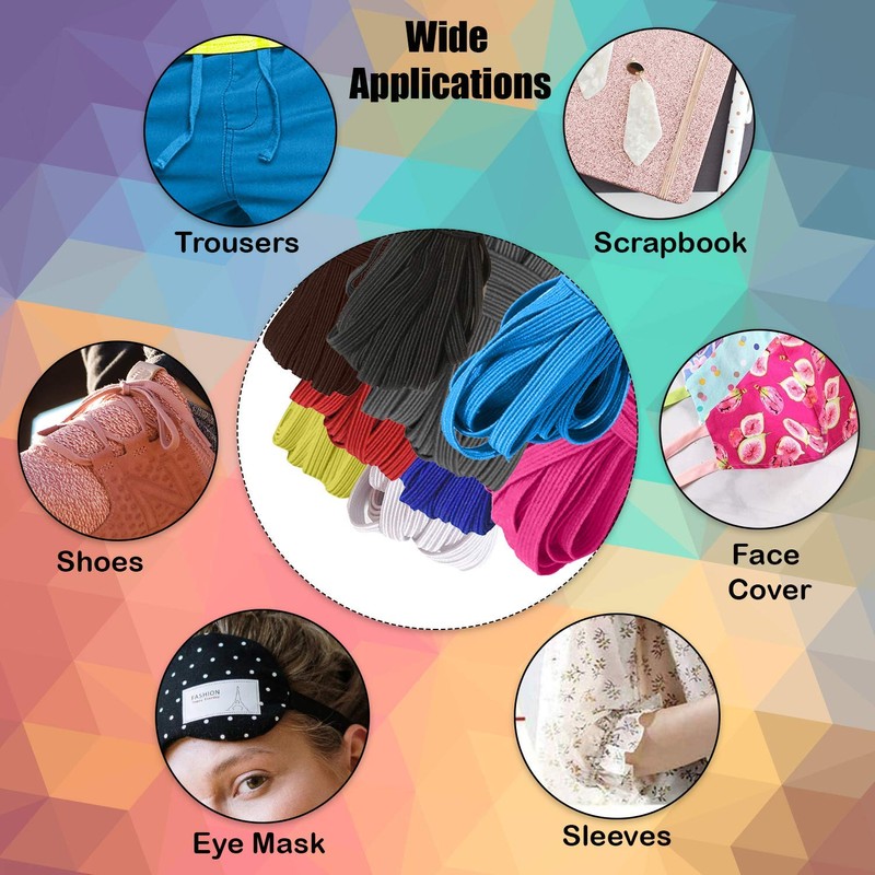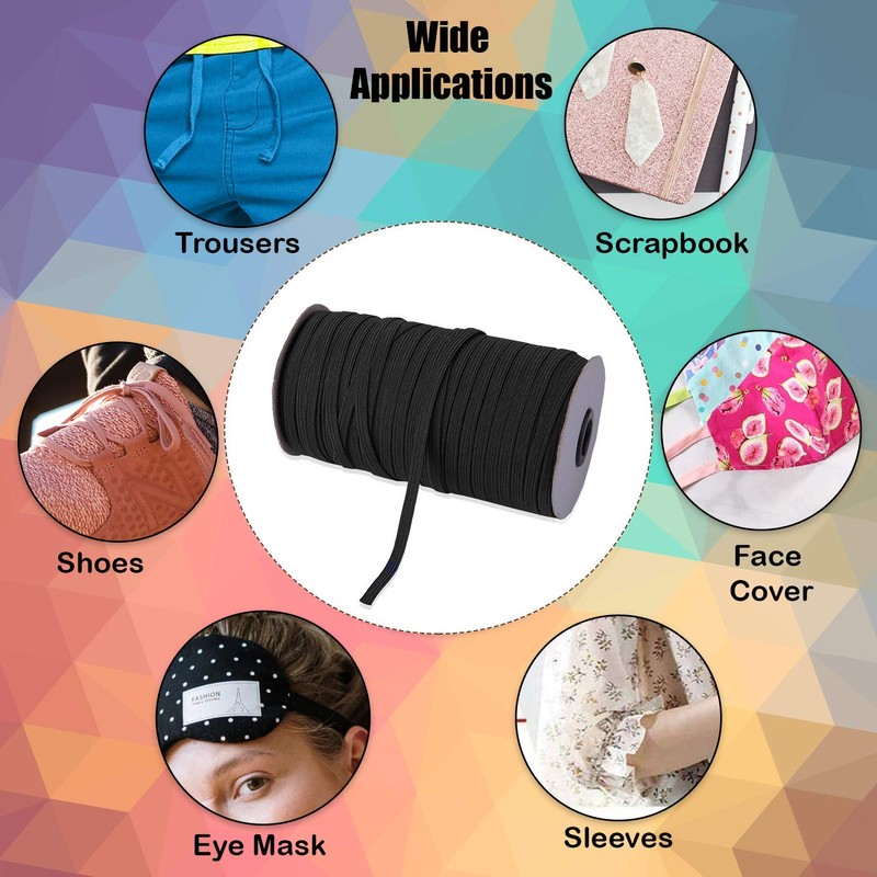 - 🧵 MULTI FUNCTIONAL ELASTIC CORD: This stretchy elastic band used for DIY homemade face cover, crafting projects, home decoration, replacement of trouser & skirt waistband, cuff bands, headband, sleeves, hair bands, hats, bags, repair clothing etc.