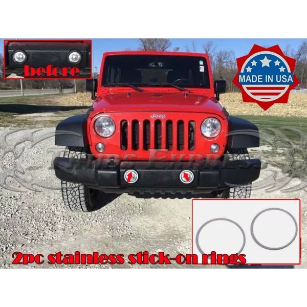 Trims Express fit:2007-2018 Jeep Wrangler JK Stainless Ring Fog Light Surround Stick-On 2Pc