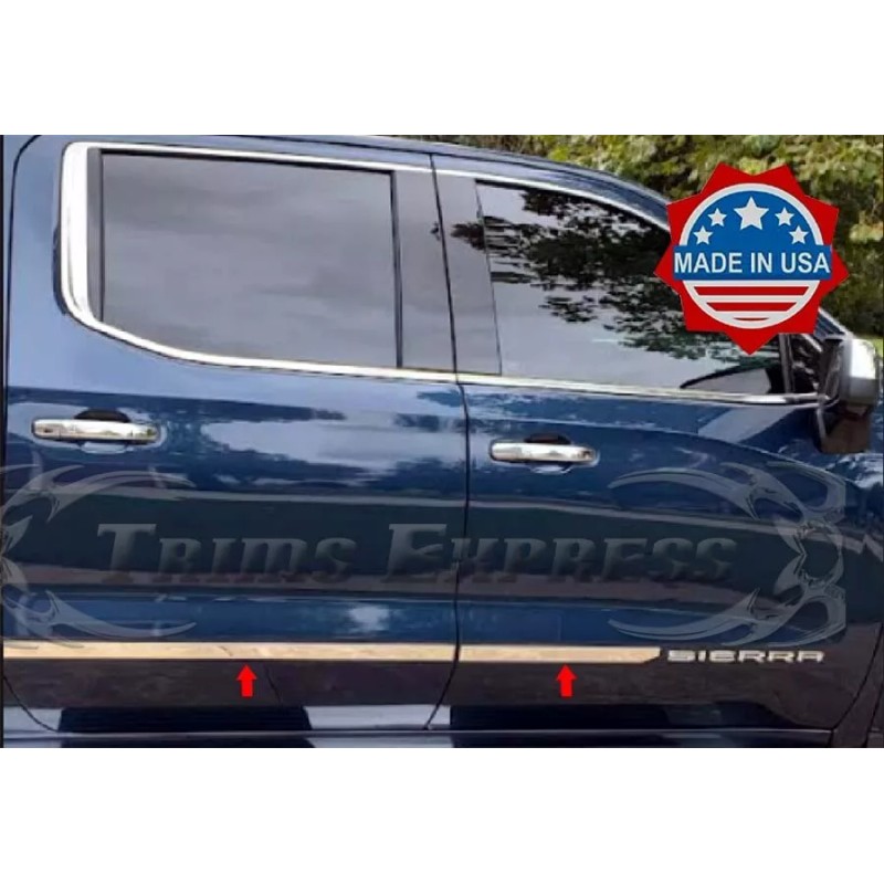 Trims Express-Made in USA Chrome Body Side Molding for 2019-2025 GMC Sierra Crew Cab 1 1/4" 4Pc Stainless