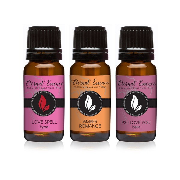 Trio (3) - Love Spell Type, Amber Romance & PS I Love You Type - Premium Fragrance Oil Trio - 10ml