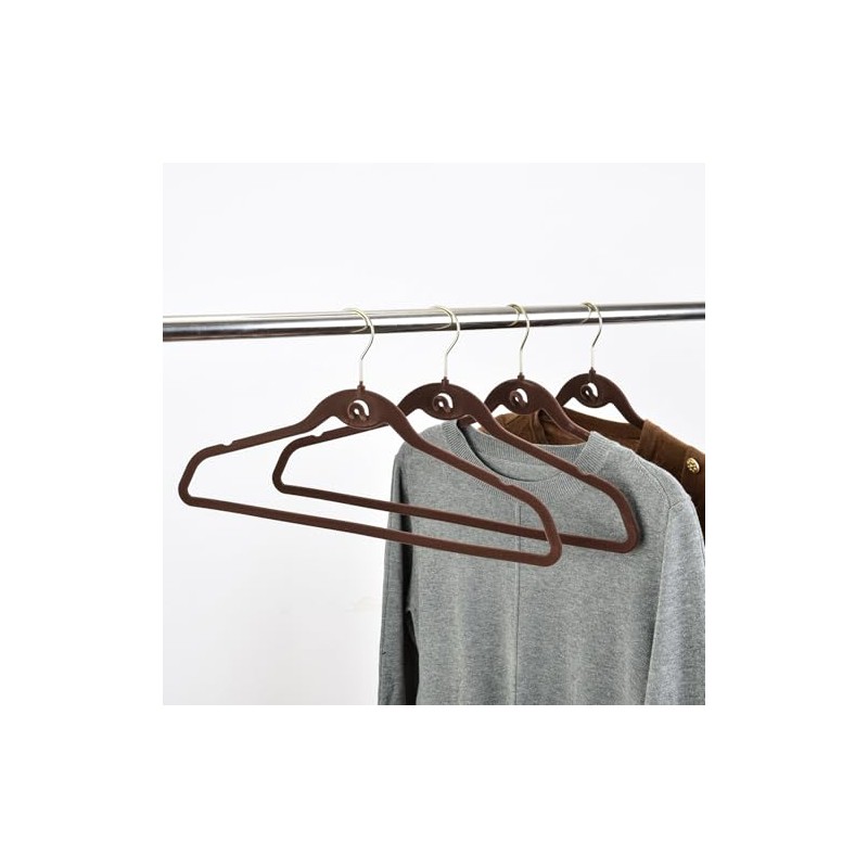 Trio Home Heavy Duty Velvet Hangers with Cascade Hook, Durable, 360 Degree Rotatable Hook (50, Brown)