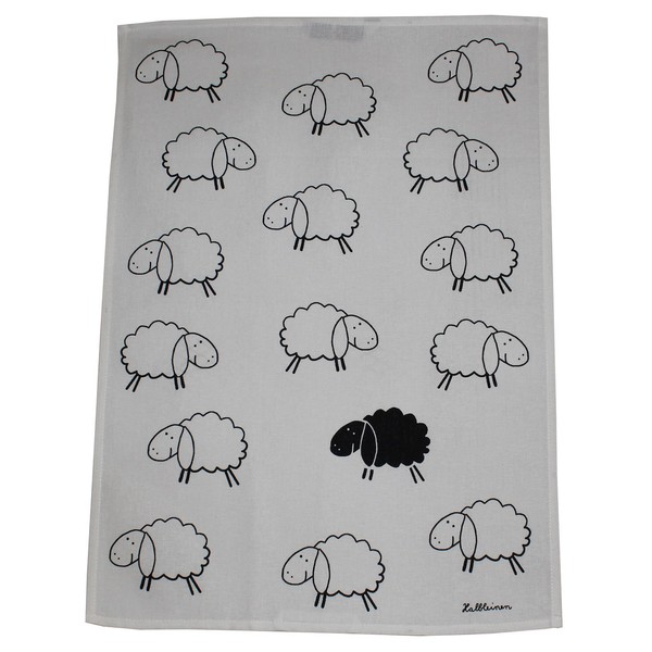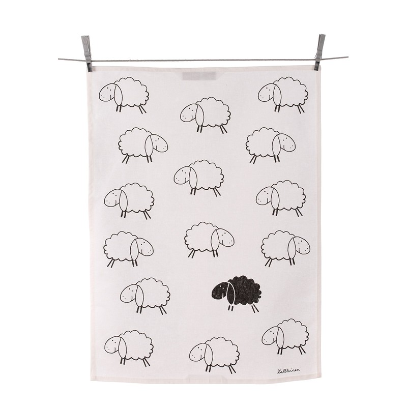 Triolino® Half-Linen Tea Towel with 'Black Sheep' Print Motif 50 x 70 cm