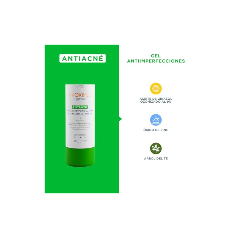 TRIOXIMED Antiacn Controla y previene lesiones de acn, espinillas, granos, barros Facial y Corporal Aceite de Girasol Ozonizado