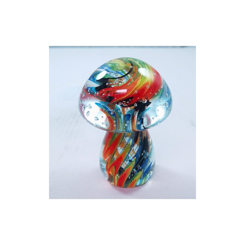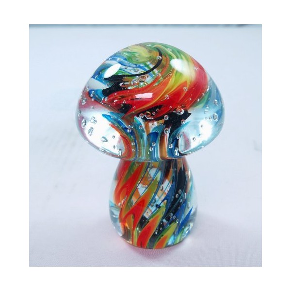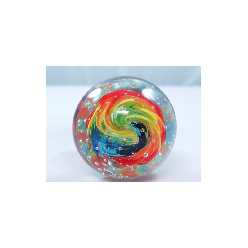 This lovely paperweight was handcrafted by skilled artisans who worked night and day to refine his skill. Each piece starts with a designated shape carefully formed by the artist. Through hard work and years of experience the artist creates various designs of vibrant colors and textures which engulf the surface each piece. Usually several layers of assorted colors and designs are rendered--overlapping one another. Once the piece nears the end of completion, it is finished with a clear coat of glass to give it an exquisite glimmering shine.