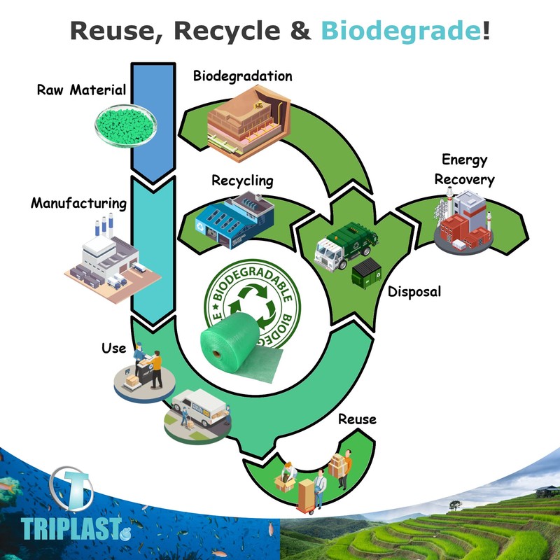 Triplast Decayable Green Bubble Wrap Roll (300mm x 10m) | Small Air Bubble Cushioning Bubble Wrap for Moving House, Fragile Item Packaging and Protective Wrapping for Shipping & Storage
