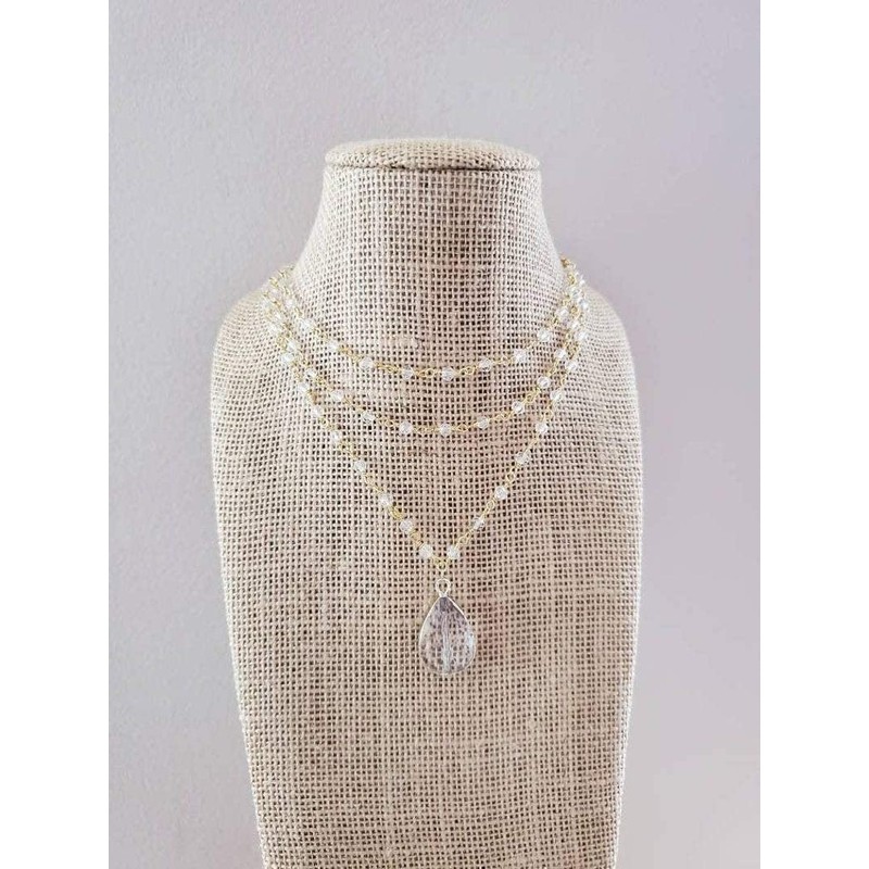 Triple Crystal Layering Rosary Chain Necklace Gold Clear Beads Gift for Her