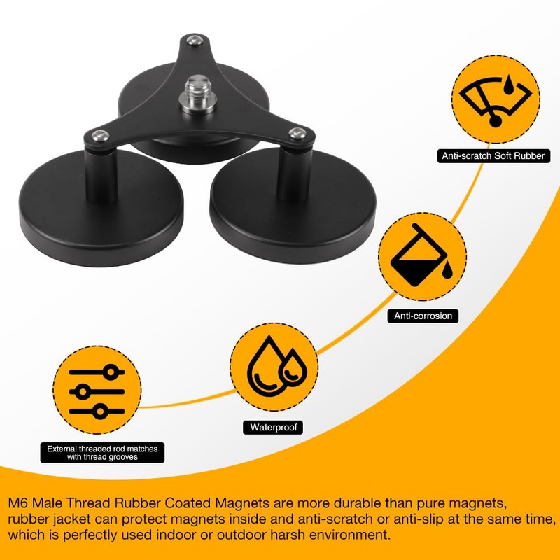 - Triple Magnet System & Heavy-Duty Construction:Featuring 3 ultra-strong 100mm magnets rated for 120lbs of pulling force (on ½" steel), this triple magnetic mount ensures unshakable stability for GNSS antennas, prism poles, and survey equipment on vehicles or curved metal surfaces