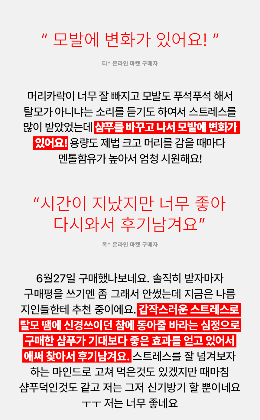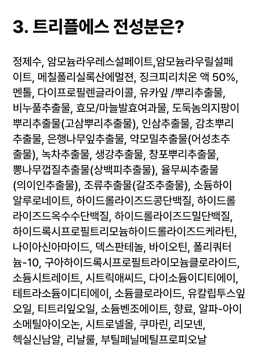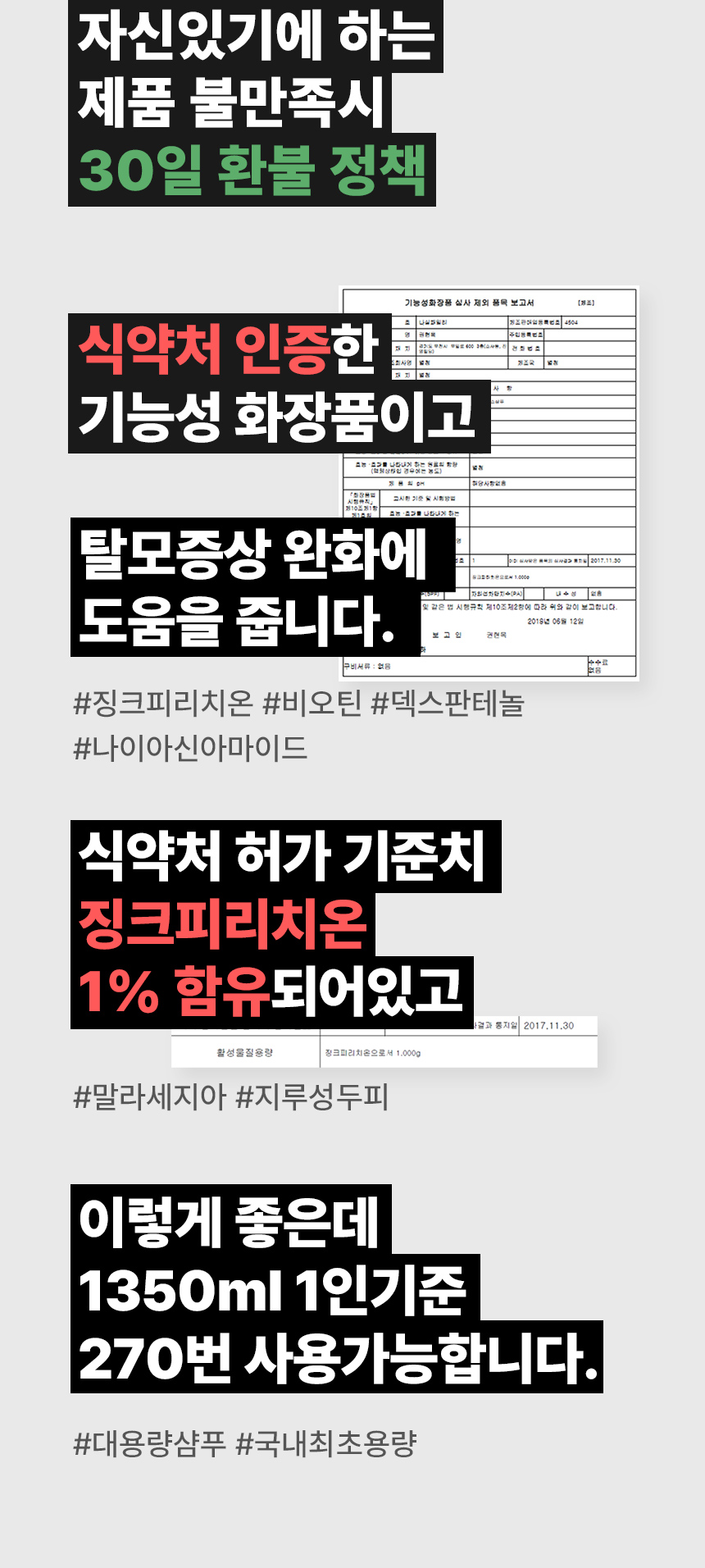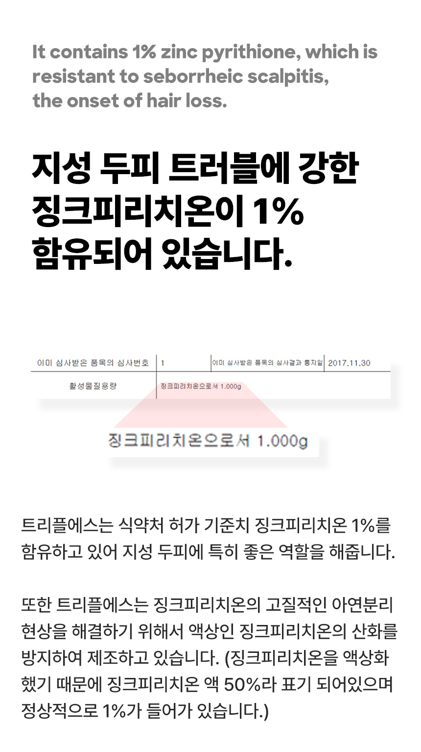 - All ingredients: Purified water, ammonium laureth sulfate, ammonium lauryl sulfate methyl polysiloxane emulsion, menthol, zinc pyrithione, dipropylene glycol, yucca leaf/root extract, soap grass extract, panthenol, yeast/garlic fermentation filtrate, thief's cane. Root extract (Sophora root extract), ginseng extract, licorice root extract, ginkgo leaf extract, medicinal root extract (Houttuynia cordata extract), green tea extract (Uiiin extract), algae extract (brown seaweed extract), sodium hyaluronate, hydrolyze De-soybean protein, hydrolyzed corn protein, hydrolyzed wheat protein, hydroxypropyltrimonium hydrolyzed keratin, niacinamide, biotin, polyquaternium-10, guarhydroxypropyltrimonium chloride, sodium citrate, Citric acid, disodium EDTA, tetrasodium EDTA, sodium chloride, eucalyptus leaf oil, tea tree leaf oil, sodium benzoate, fragrance