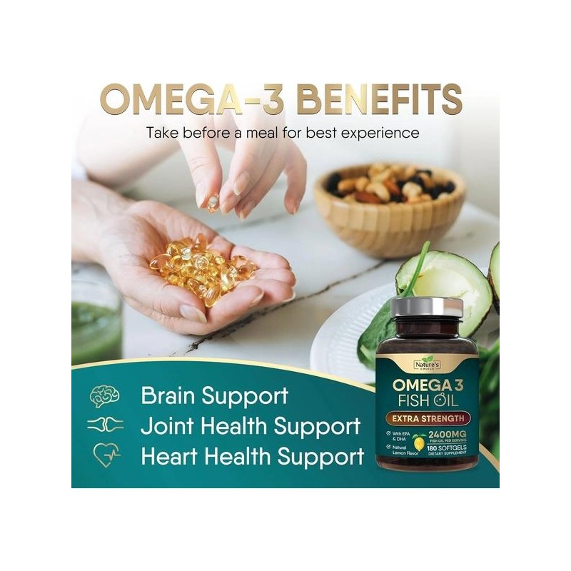 Experience the benefits of high-potency omega-3 with Nature’s Choice Triple Strength Omega-3 Fish Oil. Each serving delivers 2400 mg of concentrated EPA and DHA—essential fatty acids known to support heart, brain, joint, and overall wellness. Crafted for optimal absorption, these lemon-flavored softgels are easy to swallow and formulated to eliminate the typical fishy aftertaste.