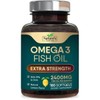 Triple Strength Omega-3 Fish Oil Supplement – 2400 mg EPA & DHA for Heart, Brain & Joint Support – High Potency, Purified Fish Oil Softgels