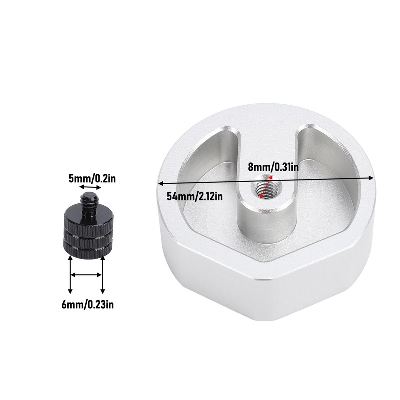 - 【1/4-20 to 3/8-16 Conversion Screw】: In order to further expand compatibility, a 1/4-20 to 3/8-16 conversion screw is included in the package, which can convert the 1/4-20 imperial threaded hole to a 3/8-16 threaded hole, adapt to more mounting accessories, and easily cope with different installation needs.