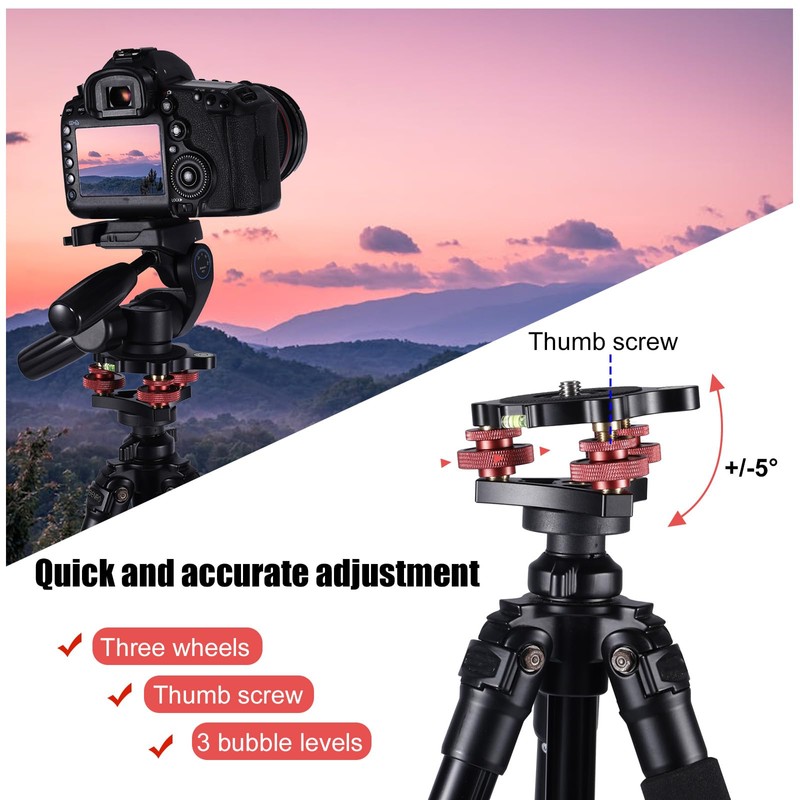 - Premium Material: This tripod leveler is made of quality aluminum alloy, which is reliable, long-lasting, sturdy and practical. Serving you for a long time.